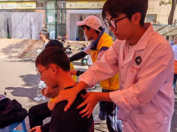 推拿手法区内,志愿者运用刚柔相济的补泻手法进行按摩。操作者以精准的解剖学认知施以点按法、揉捏法等复合技法,针对青年群体常见的伏案劳损症状,实施循经取穴治疗。手法力度根据受术者体质辨证调节,实现经气调达的按摩效果。